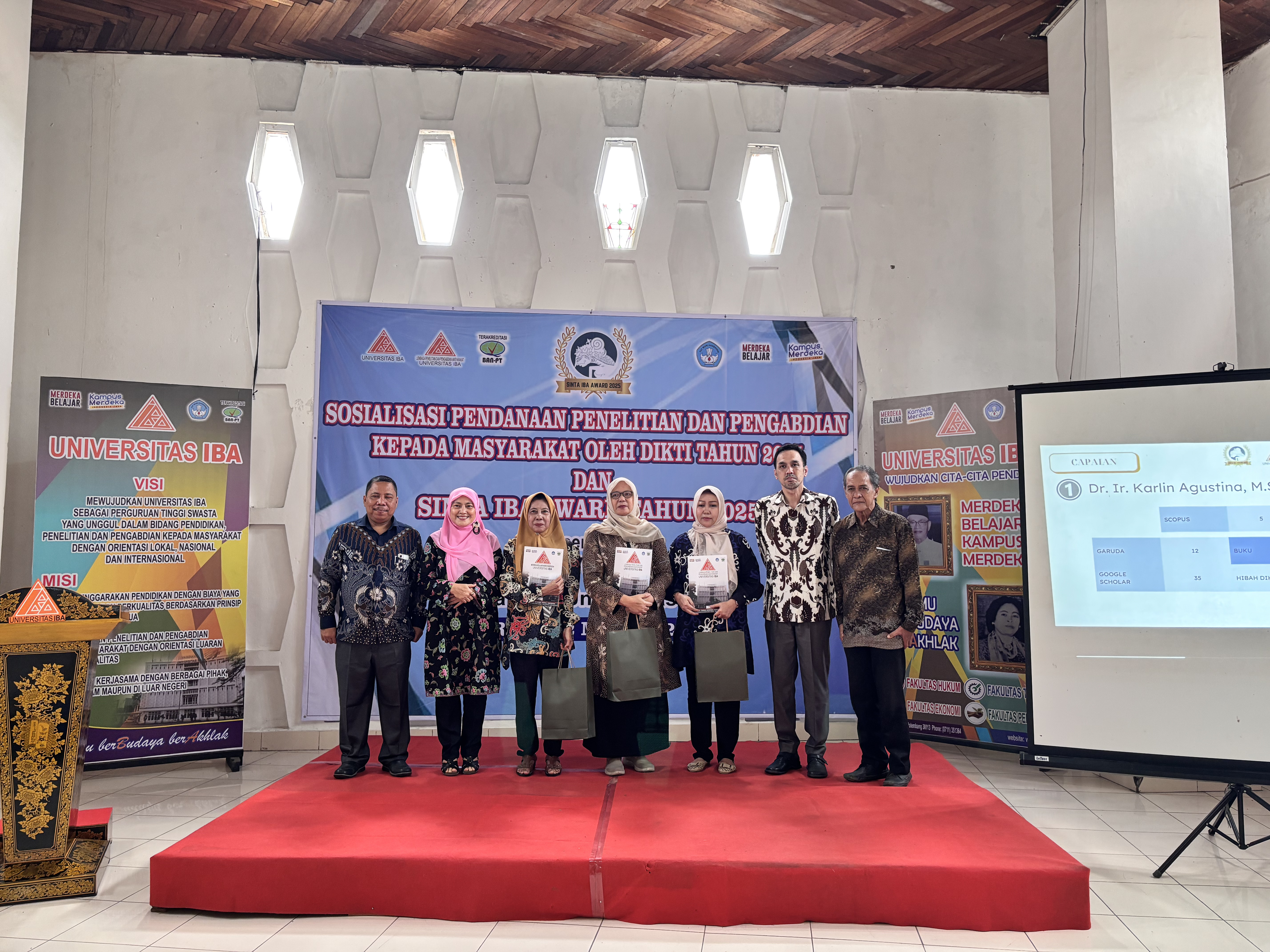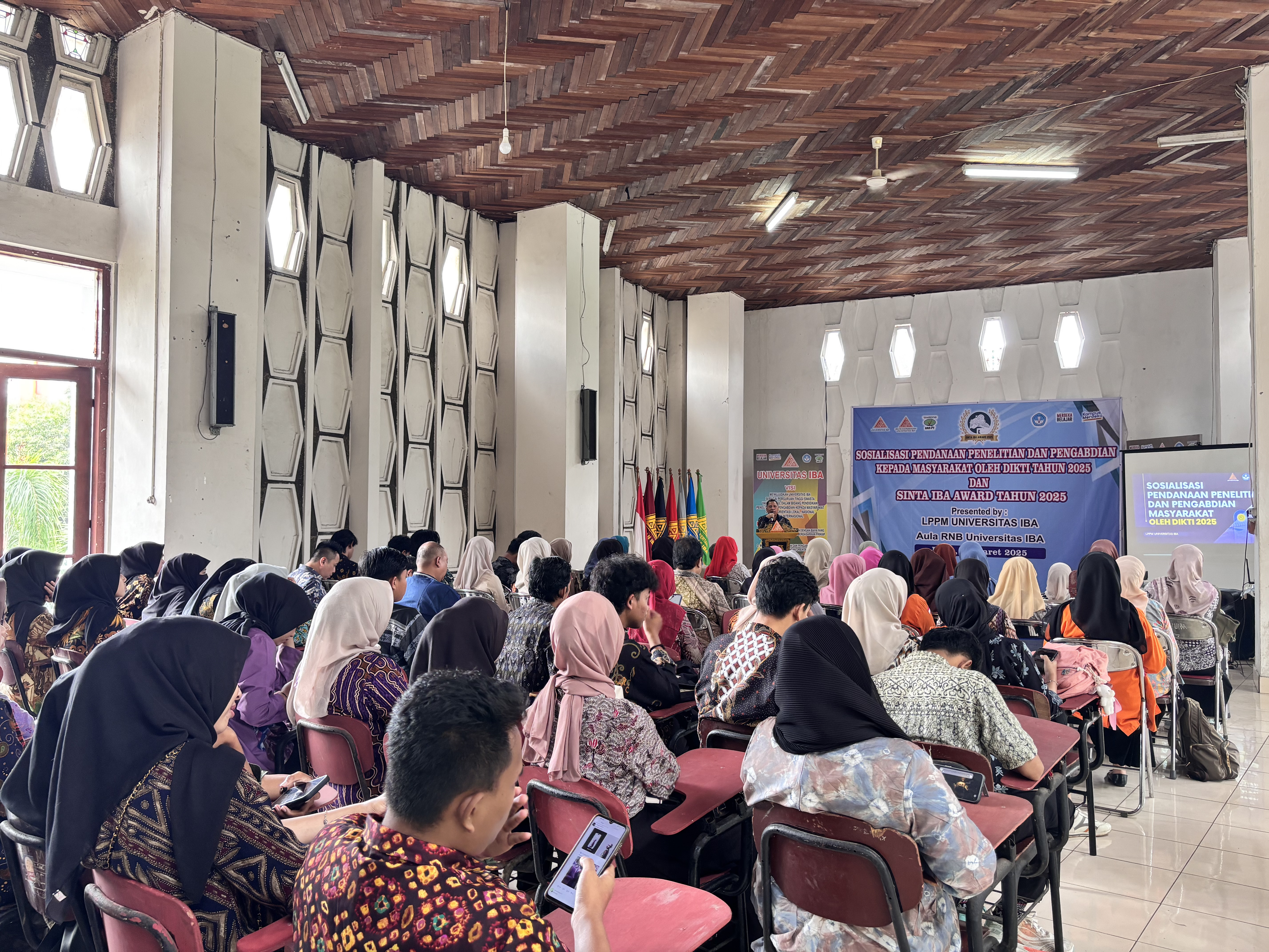 Palembang – Lembaga Penelitian dan Pengabdian kepada Masyarakat (LPPM) Universitas IBA menyelenggarakan kegiatan Sosialisasi Pendanaan Penelitian dan Pengabdian kepada Masyarakat oleh Dikti Tahun 2025 serta SINTA IBA Award Tahun 2025. Kegiatan ini dilaksanakan di Aula RNB Universitas IBA pada Rabu, 12 Maret 2025, dan diikuti oleh dosen serta sivitas akademika Universitas IBA.